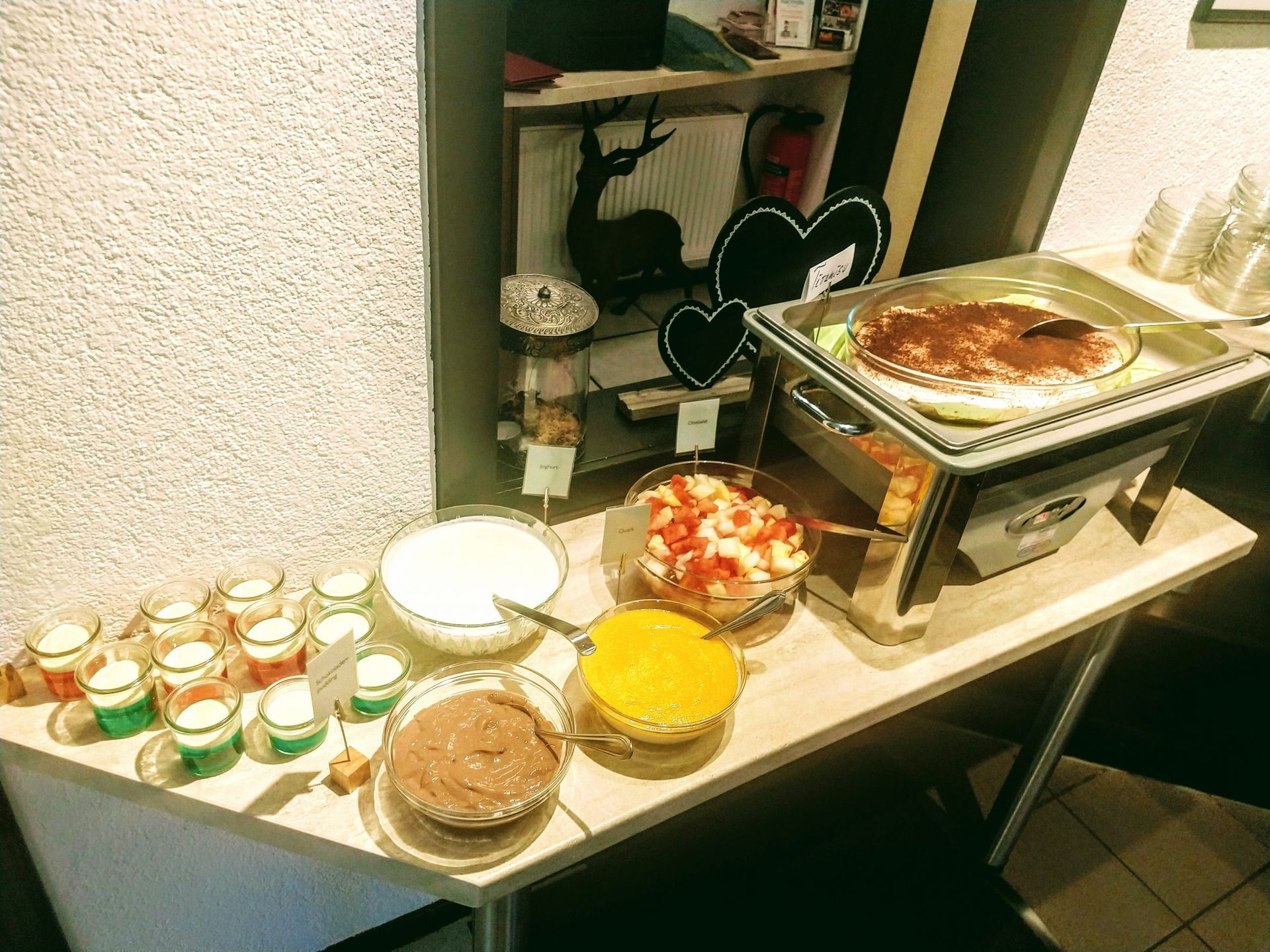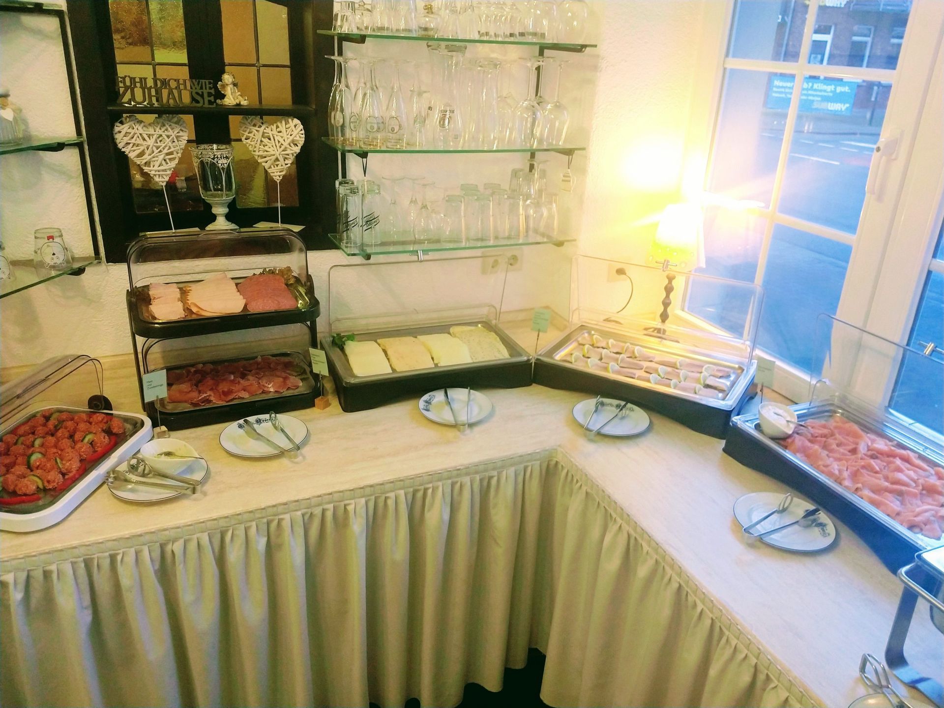 Wir bieten in der Woche – Dienstags bis Freitags – von 9 -12:30 Uhr- unser leckeres Frühstücksbuffet mit Aufschnitt und Käse, Mett , Konfitüre, Butter, Rührei, Müsli, Brötchen, Brot und Toast, dazu Filterkaffee, Tee oder Schokolade (ohne Sahne), sowie Säfte und Wasser, soviel Sie mögen, zum Preis von 16,50 € an.